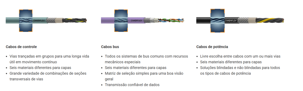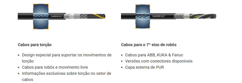 A gente sabe que, em ambientes industriais, os cabos trabalham duro: eles se movimentam, dobram, torcem, sofrem com calor, óleo, poeira e vibração. E é por isso que os cabos chainflex® são desenvolvidos especificamente para essas condições extremas.