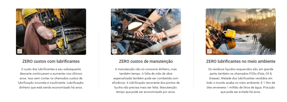 - Redução de custos operacionais: elimine gastos com graxa, mão de obra e paradas não planejadas.