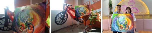 Com cores vibrantes, a obra transmite a mensagem de que o lixo plástico pode ser transformado em algo sustentável. A pintura celebra o design da igus:bike e reforça o compromisso da jornada com um futuro mais verde, unindo arte e engenharia para mudanças significativas.
