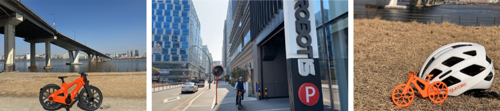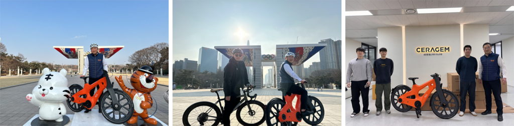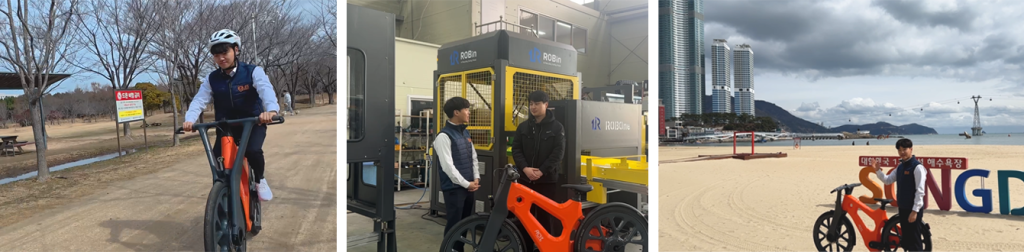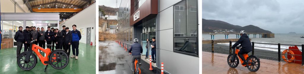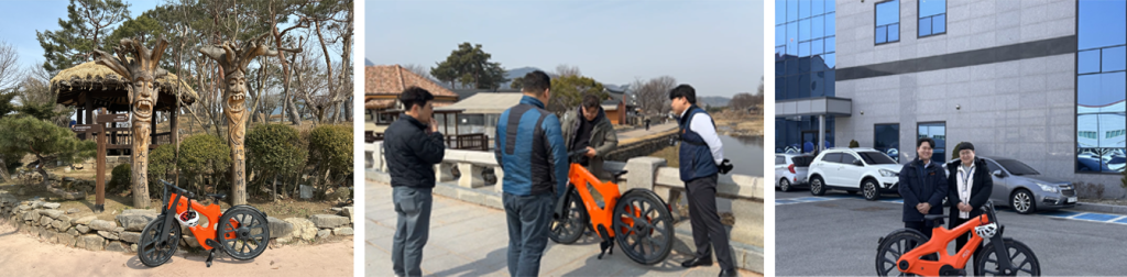 Com ponto de partida na Universidade de Kyonggi, em Suwon, a bicicleta seguiu para a Mobinn, especializada em soluções avançadas de mobilidade.