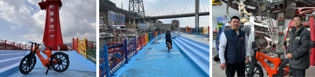 A pedalada seguiu até a Ilha de Geoje, com paradas na Praia de Mongdol e no Teleférico de Geoje, que opera com buchas livres de lubrificação da igus — um exemplo real de como nossos produtos contribuem com soluções duráveis e livres de manutenção.