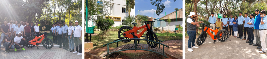 O engenheiro de produto, Pavan Raj, levou a bicicleta até a EPPL, uma empresa especializada em engenharia de precisão e automação. A equipe da EPPL recebeu a bicicleta com grande entusiasmo, admirando seu design e materiais sustentáveis. A igus tem uma longa parceria com a EPPL, fornecendo soluções como buchas iglidur e sistemas de movimentação drylin W para aplicações industriais.
