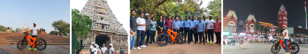 O passeio começou com uma visita ao Templo Kapaleeshwarar, onde a arquitetura e a tranquilidade da manhã proporcionaram o cenário perfeito para um passeio de bicicleta.
