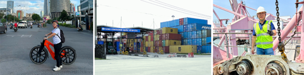 Partindo do escritório, cruzaram a Ponte Khanh Hoi e a Ponte Thoi Dai, rumo a um dos principais centros logísticos de Ho Chi Minh.