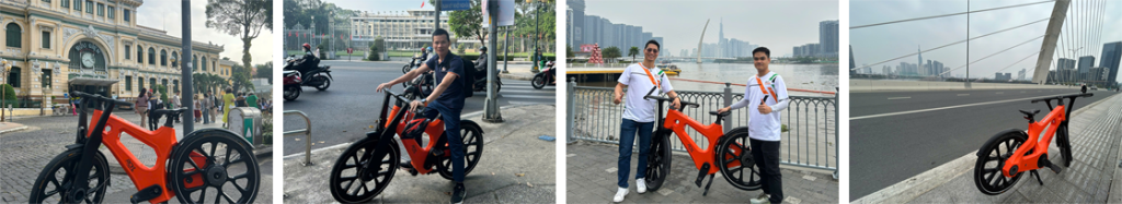 Durante a visita, os clientes puderam experimentar a igus:bike e ficaram impressionados com sua leveza e suavidade. Um deles comentou: “A bike é perfeita para os ciclistas vietnamitas! Fácil de manusear, leve e extremamente confortável.”