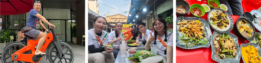 Após o passeio pela cidade, exploraram a culinária vietnamita em um roteiro gastronômico imperdível! Onde experimentaram sabores autênticos da comida de rua vietnamita, completando a jornada com uma experiência sensorial única, a igus:bike atraiu olhares dos entusiastas do ciclismo, curiosos para testá-la!