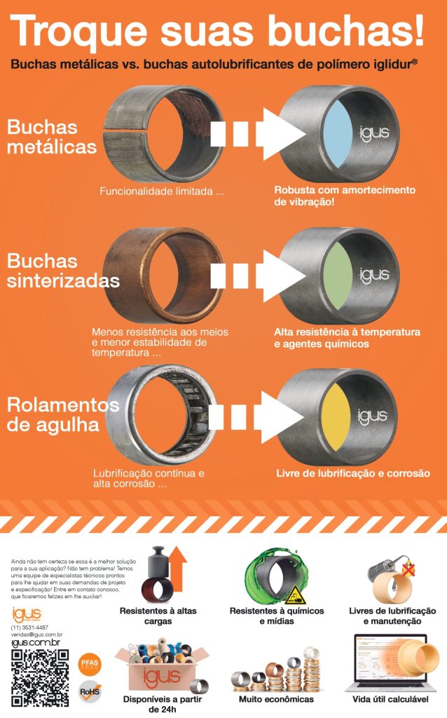 Para saber mais, acesse: https://www.igus.com.br/info/buchas-autolubrificantes-buchas-iglidur