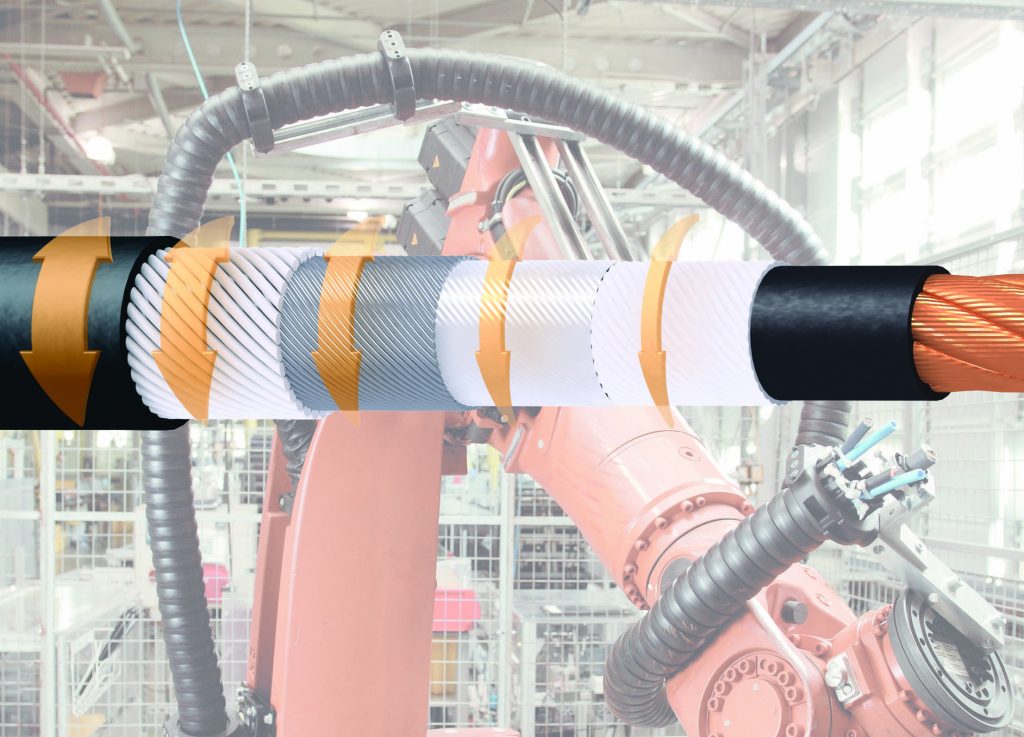 Os cabos CFROBOT fazem parte da linha de cabos chainflex®, mas talvez você esteja se perguntando: por que não posso usar cabos comuns em robôs industriais?