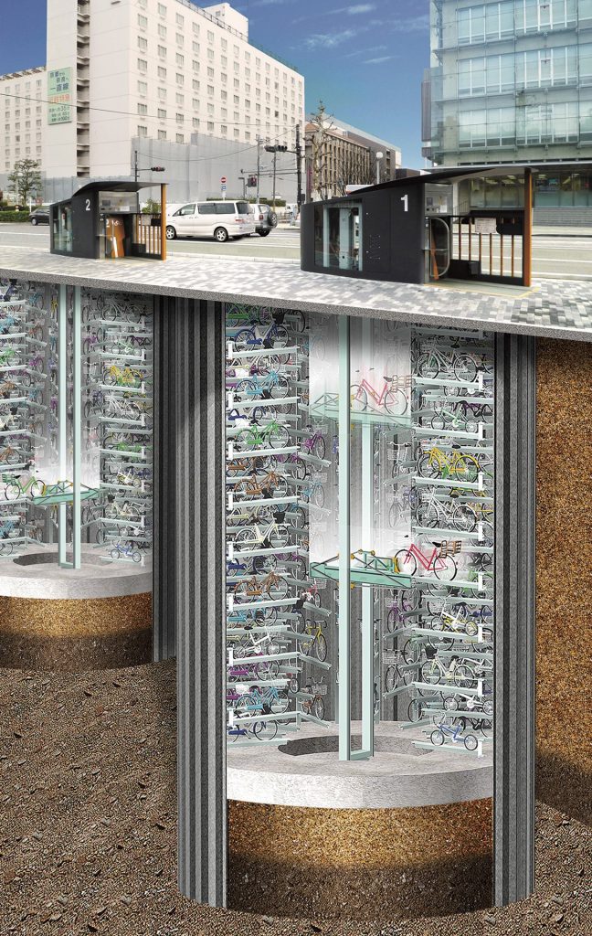 Domingo ao meio-dia, 30°C, o sol está brilhando: a oportunidade perfeita para dar um passeio de bicicleta até a cidade e tomar um sorvete. Ao chegar lá, a surpresa desagradável: todos os suportes para bicicletas estão em uso. A alternativa de deixar a bicicleta na calçada acabou sendo um erro fatal. Um sorvete depois e a bicicleta foi roubada. Esse problema afeta milhares de ciclistas na Alemanha, pois os suportes para bicicletas são escassos. No entanto, há uma solução que está sendo implementada atualmente no Japão: uma garagem subterrânea chamada Eco Cycle da Giken, uma fabricante de tecnologia de Tóquio com quase 700 funcionários. Trata-se de um enorme sistema robótico totalmente automatizado. Os ciclistas não precisam entrar em áreas escuras, mas podem deixar suas bicicletas acima do solo em um ponto de coleta que se parece com a entrada de um elevador. Outra vantagem: a paisagem urbana permanece praticamente inalterada.