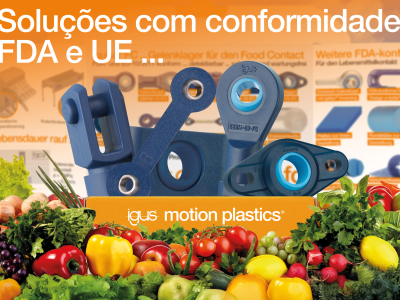 A igus desenvolveu produtos específicos com conformidade FDA para indústria alimentícia e que possuem vida útil calculável. Com uma ampla linha de polímeros de alto desempenho, a empresa oferece soluções que são livres de manutenção, lubrificação, instalação simples, operação de baixo ruído e baixa vibração. Toda essa previsibilidade da vida útil do produto, assegura que essas paradas não planejadas não ocorrerão e que a manutenção pode ser planejada antecipadamente evitando custos dispendiosos.